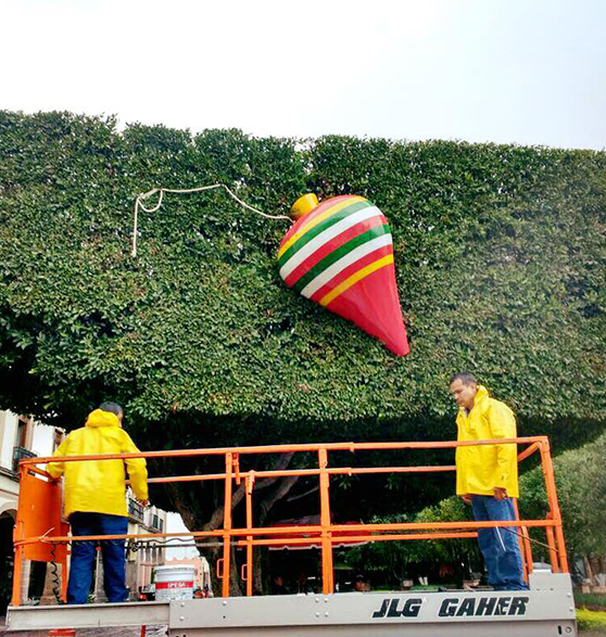 También nos especializamos en creación de figuras navideñas para decoración de interiores y exteriores, como las esferas gigantes, villas navideñas, osos polares, etc. Contamos con un exteso catálogo de figuras y esferas gigantes que puedes descargar en nuestra página: Esferas gigantes